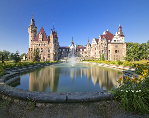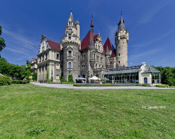 Das Schloss Moszna, oft als das „polnische Disneyland“ bezeichnet, ist ein wahres Juwel der Architektur und Fantasie – wie aus einem Märchen! Nur 30 km südlich von Opole gelegen, beeindruckt es mit seiner außergewöhnlichen Form: 365 Zimmer, 99 Türme und Türmchen – jeder mit seinem eigenen Charakter und Geschichte. Ein Ort, der die Vorstellungskraft von Groß und Klein gleichermaßen beflügelt. Das Schloss wird von einem beeindruckenden, über 100 Hektar großen Landschaftspark umgeben – ideal für entspannte Spaziergänge entlang von Alleen mit über 300 Jahre alten Bäumen. Im Frühling verwandelt die Natur dieses Gebiet in einen zauberhaften Garten, besonders wenn Azaleen und Rhododendren blühen (Mai–Juni). Und wer ein wenig Exotik sucht, sollte unbedingt das Gewächshaus besuchen, in dem tropische Pflanzen gedeihen. Ein Ort, an dem die Zeit langsamer, schöner und magischer zu vergehen scheint.